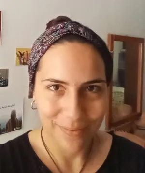 Διδάσκω αραβικά τα τελευταία 3 χρόνια ενώ παράλληλα εργαζόμουν για 2 χρόνια ως πολιτισμική διαμεσολαβήτρια αραβικών με τους πρόσφυγες. Η βασική μέθοδος εκμάθησης για μένα ήταν η αυτοδιδασκαλία μέχρι το επίπεδο Β1, όπου συμμετείχα στις εξετάσεις και πήρα το πτυχίο με άριστα. Η προετoιμασία των αραβικών για εξετάσεις ήταν απαιτητική καθώς δεν υπήρχε συγκεκριμένη ύλη. Επίσης, τα υπάρχοντα βιβλία με κάποιες εξαιρέσεις είναι κάπως χαοτικά καθώς έχουν πολλές πληροφορίες μαζί, εστιάζουν στη γραμματική και όχι στο θεματικό λεξιλόγιο και αυτό αποθαρρύνει πολλούς να συνεχίσουν με τη γλώσσα. Για το λόγο αυτό έχω δημιουργήσει το δικό μου υλικό ώστε να καλύψω τις ανάγκες των μαθητών/τριων μου.