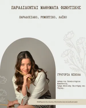 Μαθήματα Παραδοσιακού και Λαϊκου τραγουδιού, φωνητικής, ορθοφωνίας και μουσικής θεωρίας.🌸